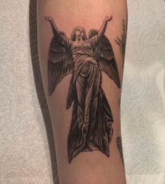 My favorite things to tattoo tend to be recreations of old artworks. Such as Michelangelo statues and paintings, to Leonardo da Vinci's artworks as well as any other famous statues or paintings. I also love to tattoo objects such as swords, daggers and anything of the sort. Flowers are also one of my staples, the signature peonies and leaves are another favorite along side my famous butterflies that I am well known for! I also love to do any form of script and handwriting as well. Any idea you have, I can make a reality.